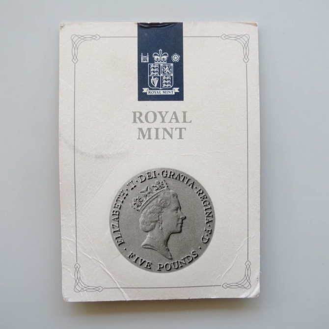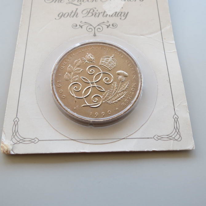 This 1990 Queen Elizabeth The Queen Mother 90th birthday 5 pounds coin is issued in the UK by the Royal Mint. It hosts a brilliant uncirculated five pounds coin presented in a sealed pack. The commemorative coin is pre-owned.