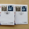 This 1995 VE Day 50th anniversary 2 pounds coin covers set is a UK first day cover collection. It commemorates the 50th anniversary of Victory in Europe Day and the covers host a Isle of Man 2 pound coin and a UK 2 pound coin by the Royal Mint. Royal Mail stamps are cancelled postmark 50th anniversary of VE Day St. Paul's London 8th May 1995.