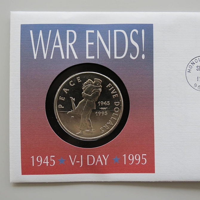 War Ends VJ Day 50th Anniversary 5 Dollar Coin Cover
