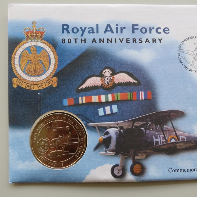 Royal Air Force 80th Anniversary 5 Pounds Coin Cover