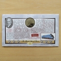This 1999 Millennium Countdown Travellers 1 crown coin cover is a Benham first day cover. It's named The Great Age of Steam and hosts a brilliant uncirculated Isle of Man one crown coin and Royal Mail commemorative stamps dedicated to the theme of travelling. Cancelled postmark The Rocket Travellers Rainhill Prescot 2nd February 1999.