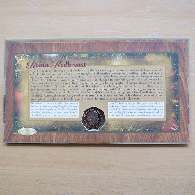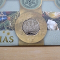 This 2001 Merry Christmas 50p pence coin cover is a Benham first day cover. It celebrates the Christmas festivities and hosts a brilliant uncirculated 50p pence coin by the Royal Mint and Royal Mail commemorative stamps showing Christmas themed stamps. Cancelled postmark Merry Christmas Frostrow Sedbergh Cumbria 6th November 2001.