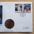 This 2002 Life & Times of The Queen Mother 1 Dollar coin cover is a Nauru first day cover by Mercury. It marks the memorial of HM Queen Elizabeth The Queen Mother and hosts a 1 dollar coin by Sierra Leone and Nauru stamps. The brilliant uncirculated coin features Her Majesty sitting in a garden. Cancelled postmarked The Queen Mother First Day of Issue Nauru 5th August 2002.