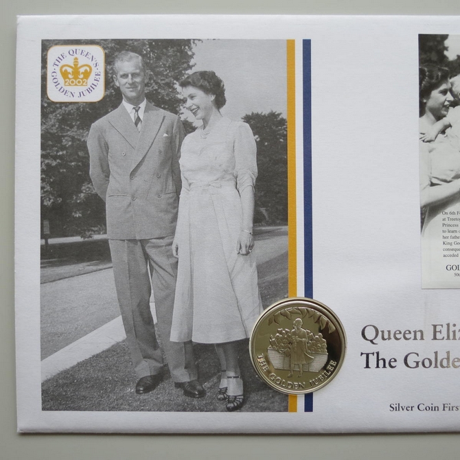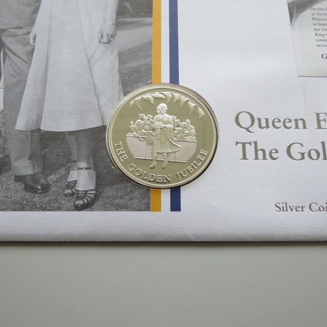 The Golden Jubilee Queen Elizabeth II Silver Proof 50p Coin Cover