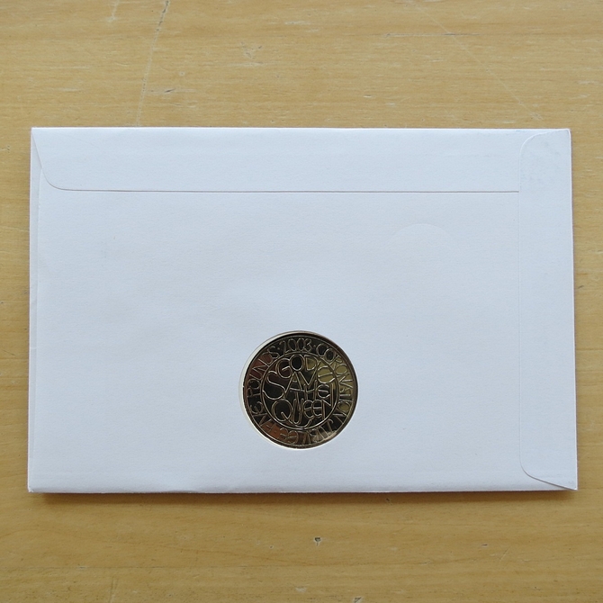 This 2003 The Queen's Coronation 50th anniversary 5 pounds coin cover is a first day cover by Mercury Covers. It commemorates HM Queen Elizabeth II's 50th coronation anniversary and hosts a brilliant uncirculated five pounds coin by the Royal Mint and Royal Mail stamps showing photographs of the Coronation celebration of 1953. Postmark cancelled %0th Anniversary of the Queen's Coronation Westminster Abbey London SW1 2nd June 2003.
