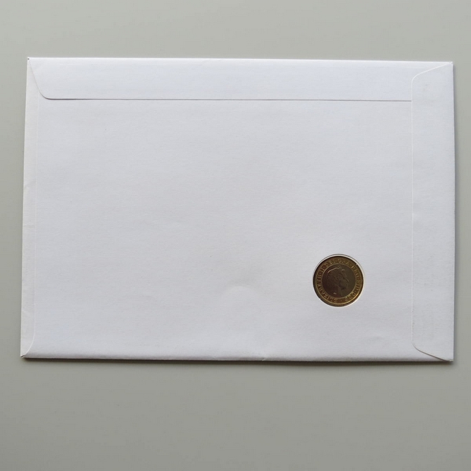 The large format commemorative coin cover is pre-owned.