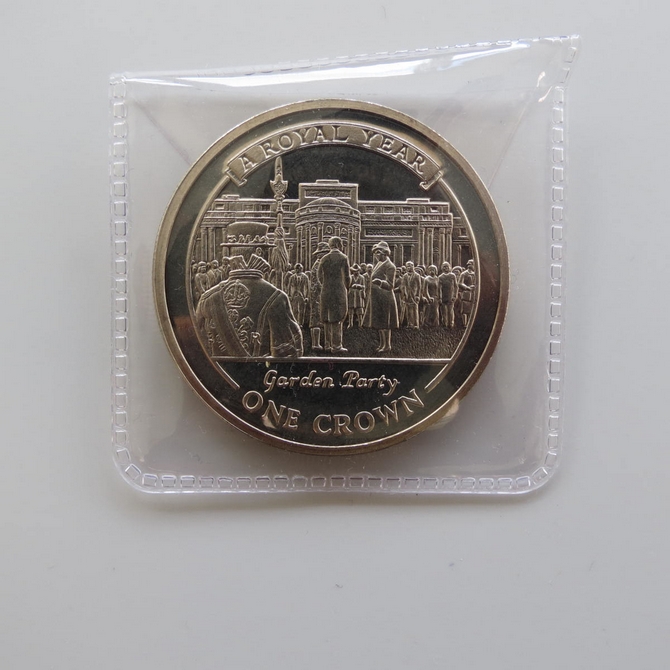 This 2005 A Royal Year brilliant uncirculated 1 Crown coin is issued by Gibraltar. It reflects on the annual Garden Party hosted by Her Majesty Queen Elizabeth II in Summertime. The coin is presented in a clear plastic sleeve.