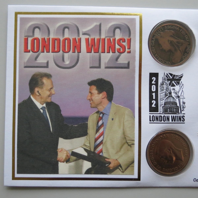 2005 London Wins 2012 Pennies Coin Cover - Benham Signed UK PNC First Day Covers