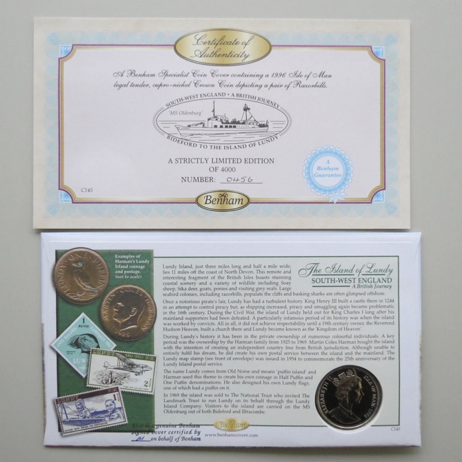 2005The Island of Lundy Crown Coin CoverBenham Signed UK PNC First Day Covers