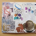 This 2005 The Legend of King Arthur 1 crown coin cover is a Benham first day cover. It celebrates the centenary of the Magic Circle and hosts a Isle of Man legend of King Arthur Merlin one crown coin and Royal Mail stamps. FDC hand signed by Cherie Lunghi, a film actress. Cancelled postmark It's Magic St Austell Cornwall 15th March 2005.