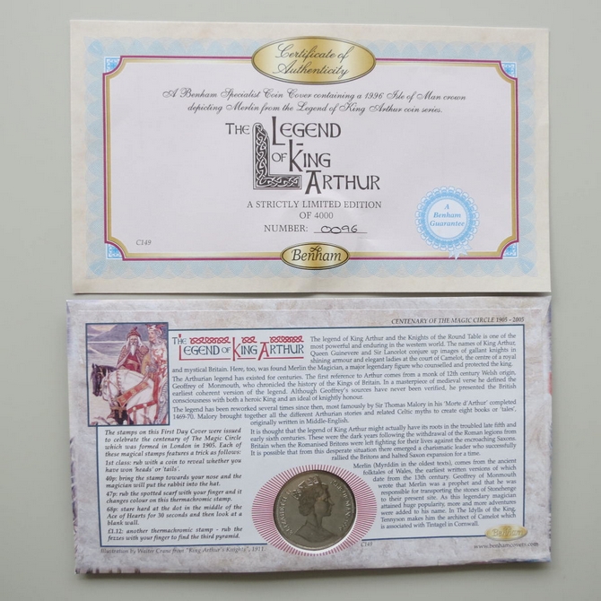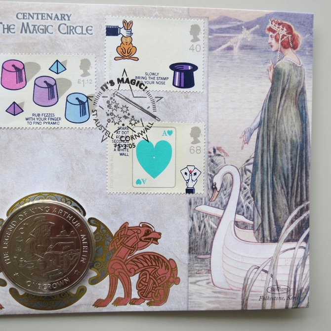 This 2005 The Magic Circle centenary Crown coin cover is issued by Benham as UK PNC First Day Covers. It hosts a brilliant uncirculated one Crown coin by the Isle of Man and Royal Mail stamps. Postmark cancelled dated 15th March 2005.