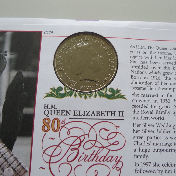 2006HM Queen Elizabeth II 80th Birthday 5 Pounds Coin Cover Benham Signed First Day Covers