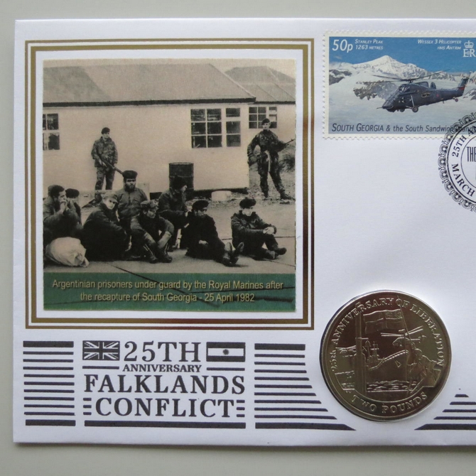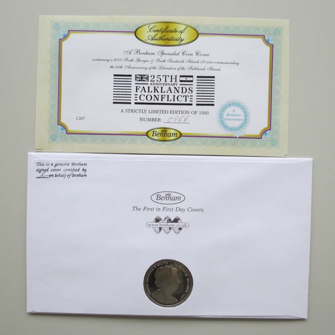 2007 25th Anniversary of Falklands Conflict One Crown Coin Cover - Benham Signed PNC First Day Covers