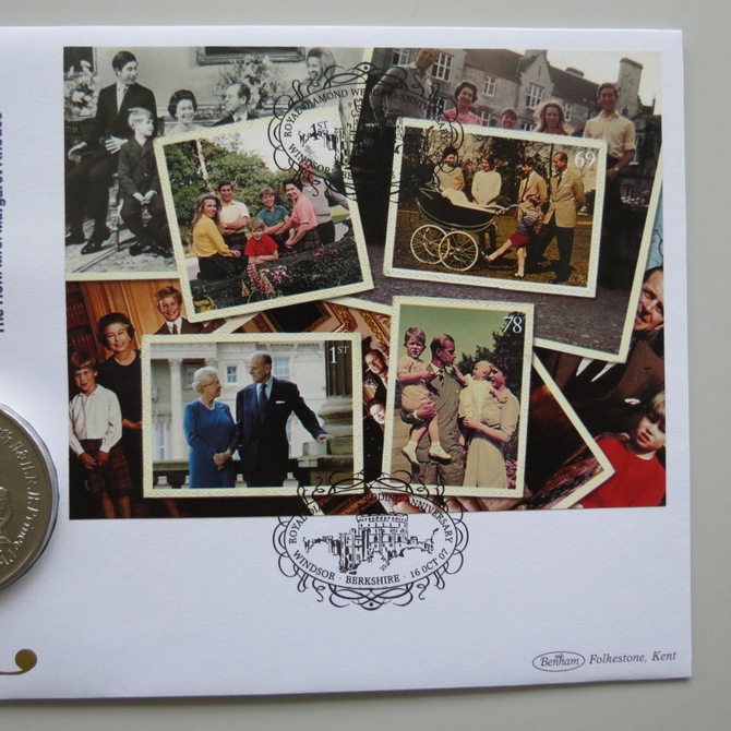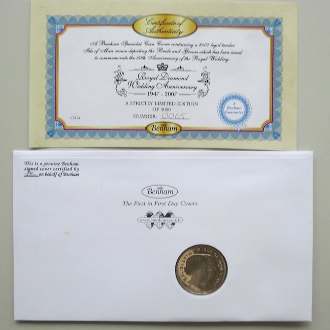 2007 Royal Diamond Wedding Anniversary 1 Crown Coin Cover - Benham Signed First Day Covers
