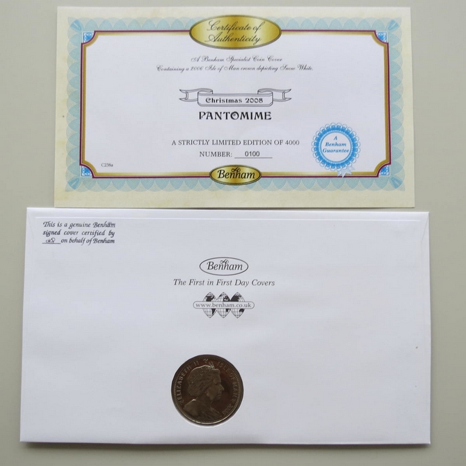 2008 Christmas Pantomime 1 Crown Coin Cover - Benham Signed UK PNC First Day Covers