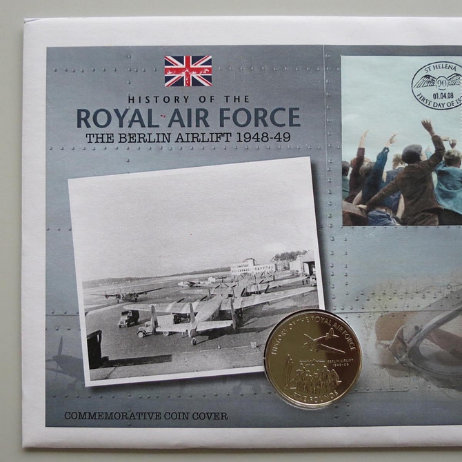 2008History of the RAF The Berlin Airlift 5 Pounds Coin CoverSt Helena PNC First Day Covers