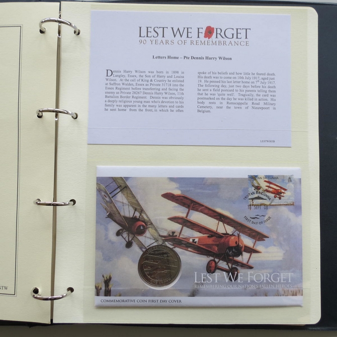 This 2008 Lest We Forget stamp & coin cover collection is siisued by Westminster Collection. It celebrates 90 years of Remembrance and hosts 3 coin covers and miniature stamp cachets. You can view each individual item photos and the complete collection in