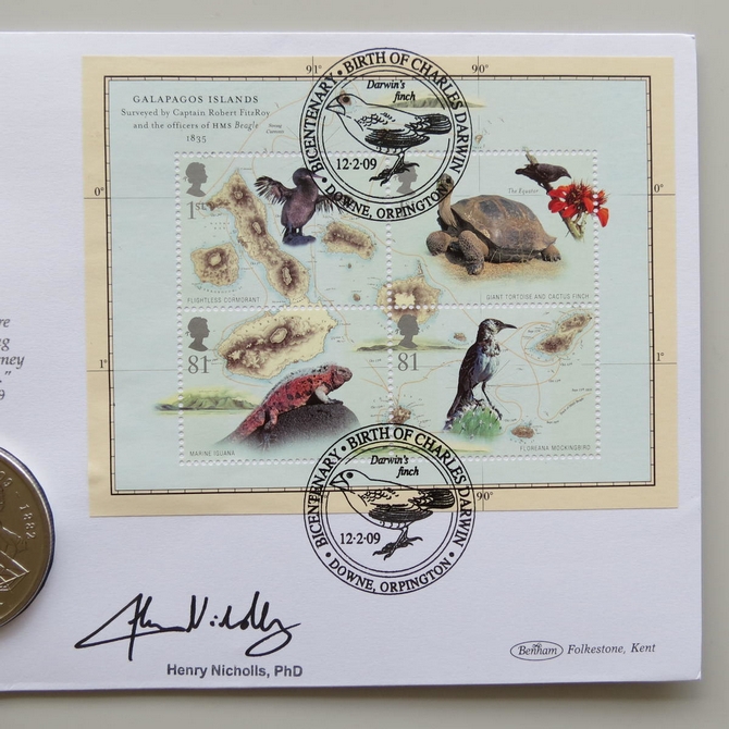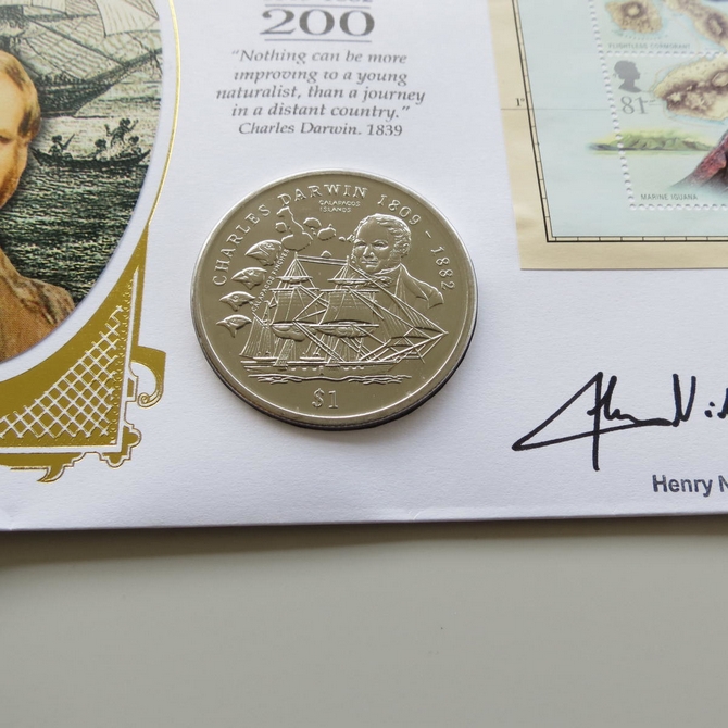 2009 Charles Darwin Birth Bicentenary 1 Dollar Coin Cover - Benham Signed UK PNC First Day Covers