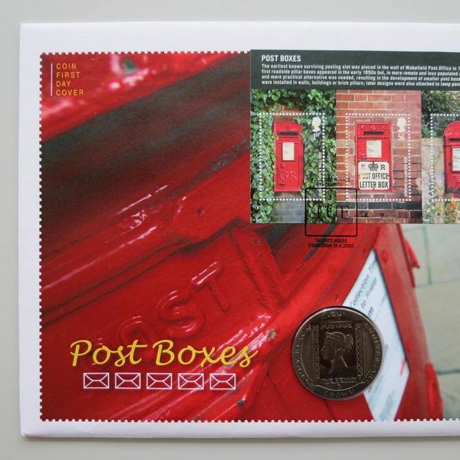 2009Post Boxes 1 Crown Coin CoverUK PNC First Day Covers