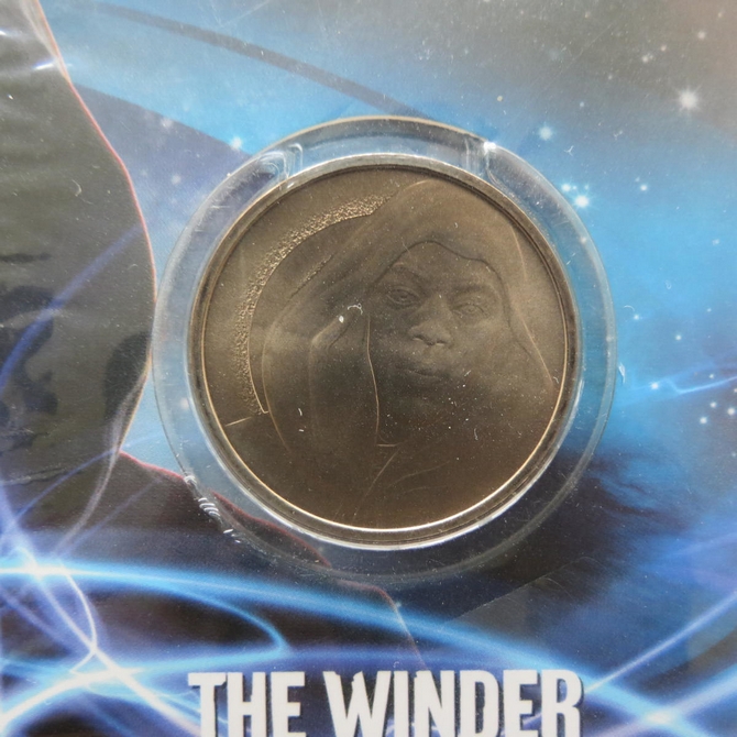 This 2010 BBC Doctor Who The Winder Medal was issued in the UK by the Royal Mint. It features the Winders characters in the TV serial who are the mysterious cowled figures that patrol the streets of Starship UK. Presented in a blister card that is sealed.