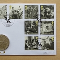 This 2010 Battle of Britain 70th anniversary 1 crown coin cover is a Benham first day cover. It commemorates the 70th years since the Battle of Britain and hosts a brilliant uncirculated Isle of Man one crown coin and Royal Mail stamps showing live images of the action during this war phase. Cancelled postmark Britain Alone London 13th May 2010.