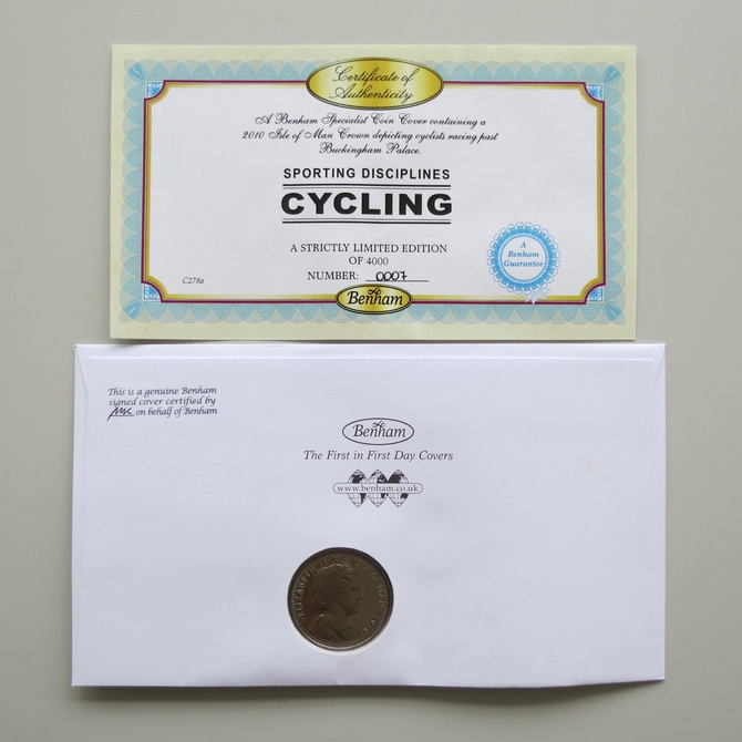 2010Cycling Countdown to London 2012 Olympics Crown Coin CoverBenham Signed UK PNC