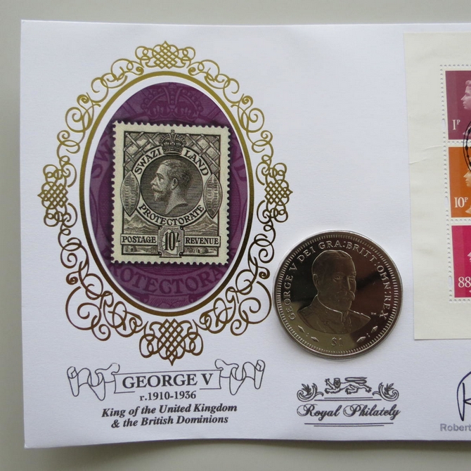 2010King George V Royal Philately 1 Dollar Coin CoverBenham Signed UK PNC