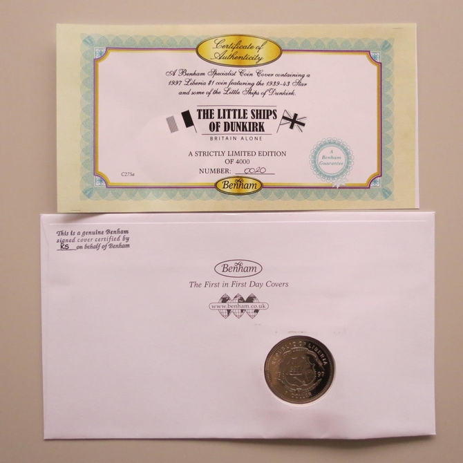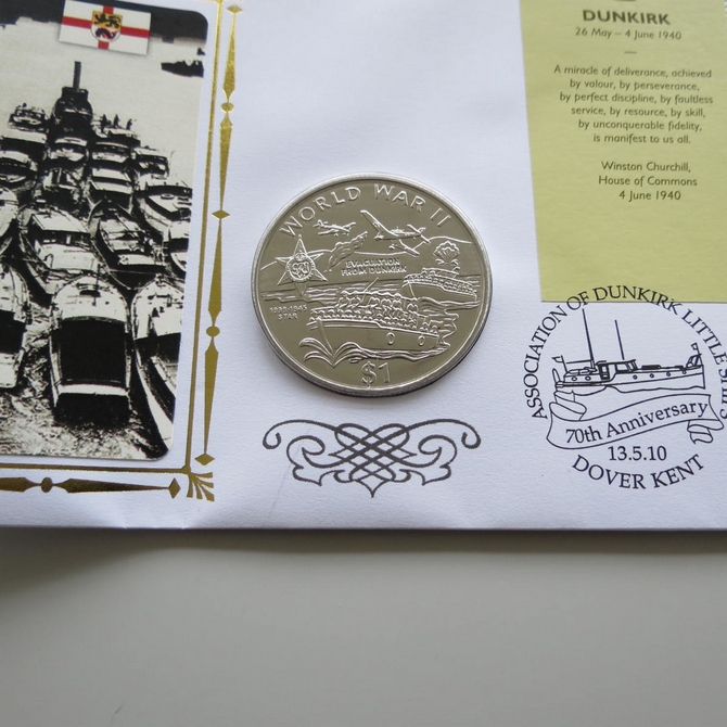 2010 The Little Ships of Dunkirk 1 Dollar Coin Cover - Benham Signed UK PNC First Day Covers