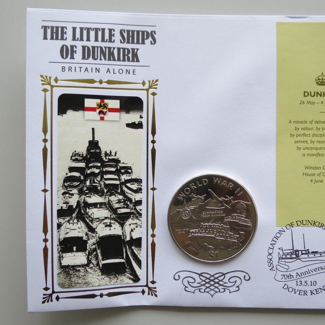 2010The Little Ships of Dunkirk 1 Dollar Coin CoverBenham Signed UK PNC First Day Covers