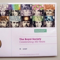 This 2010 The Royal Society 350th anniversary medal cover is a Royal Mail first day cover. It celebrates 350 years of the Royal Society formed in 1660 and hosts a medal by the Royal Mint and Royal Mail commemorative stamps depicting key contributors to the society's work. Cancelled postmark 350th Anniversary of the Royal Society London SW1 25th February 2010.