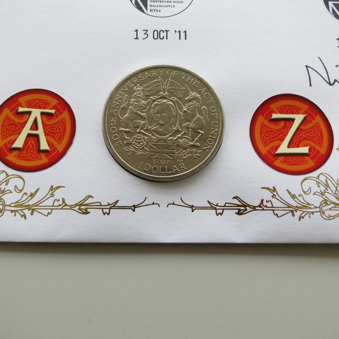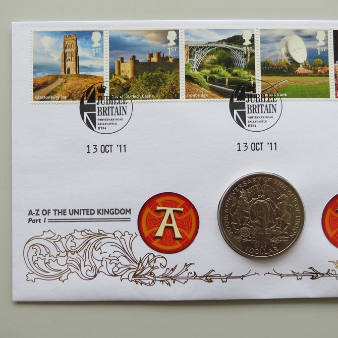 2011 A to Z of the United Kingdom 1 Dollar Coin Cover - Benham Signed UK PNC