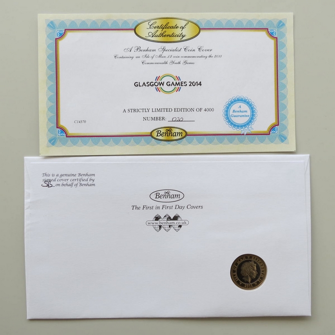 2011Welcome to Glasgow Commonwealth Games 2 Pounds Coin CoverBenham Signed UK PNC