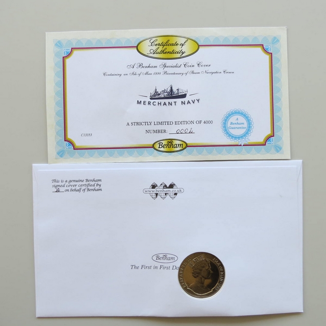 2013Merchant Navy 1 Crown Coin CoverBenham Signed UK PNC First Day Covers