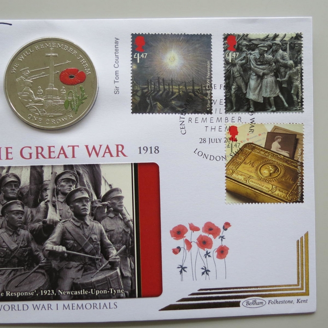 2014 The Great War 1 Crown Coin Cover - Benham Signed UK PNC First Day Covers
