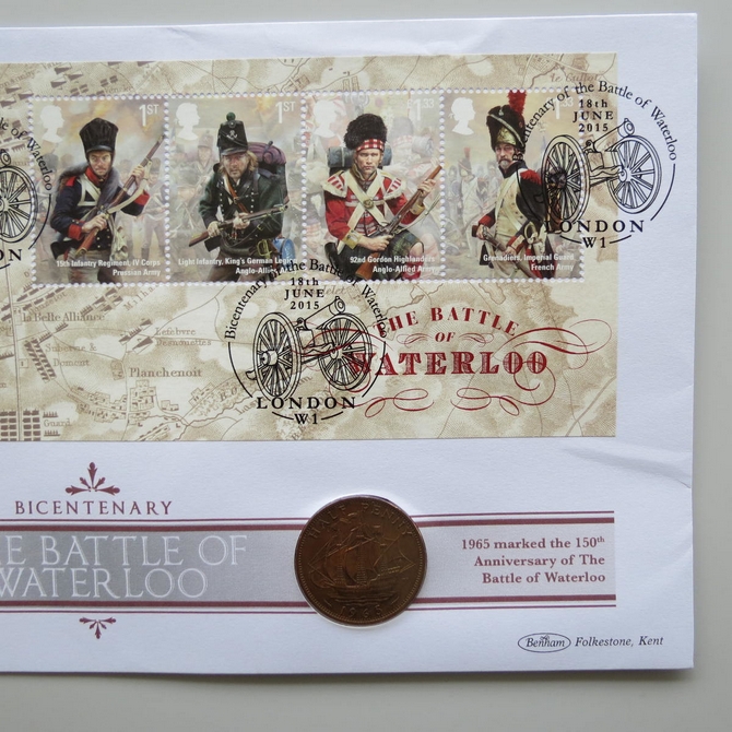 2015 Battle of Waterloo Bicentenary Half Penny Coin Cover - Benham Signed UK PNC