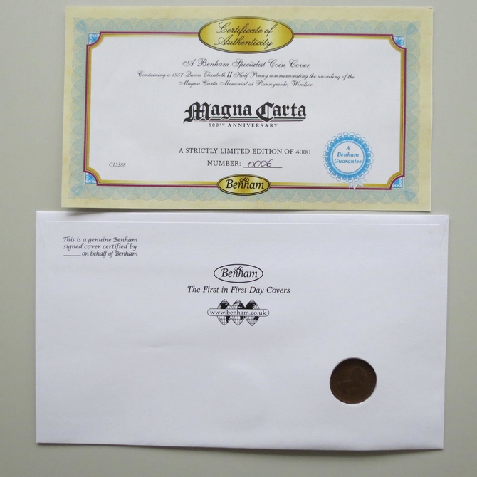 2015 Magna Carta 800th Anniversary Half Penny Coin Cover - Benham Signed UK PNC