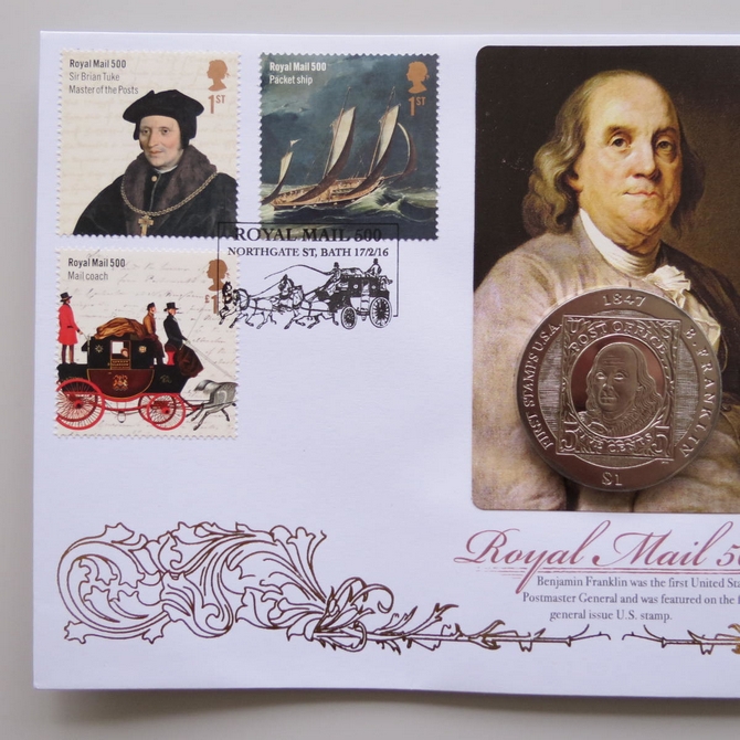 2016Royal Mail 500th Anniversary 1 Dollar Coin CoverBenham Signed UK PNC First Day Covers