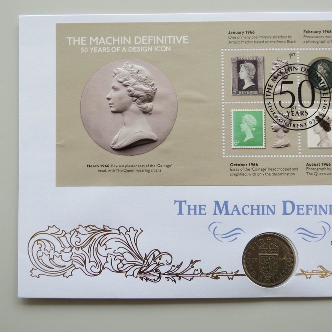 2017Machin Definitive 50 Years 1 Shilling Coin CoverBenham Signed UK PNC First Day Covers