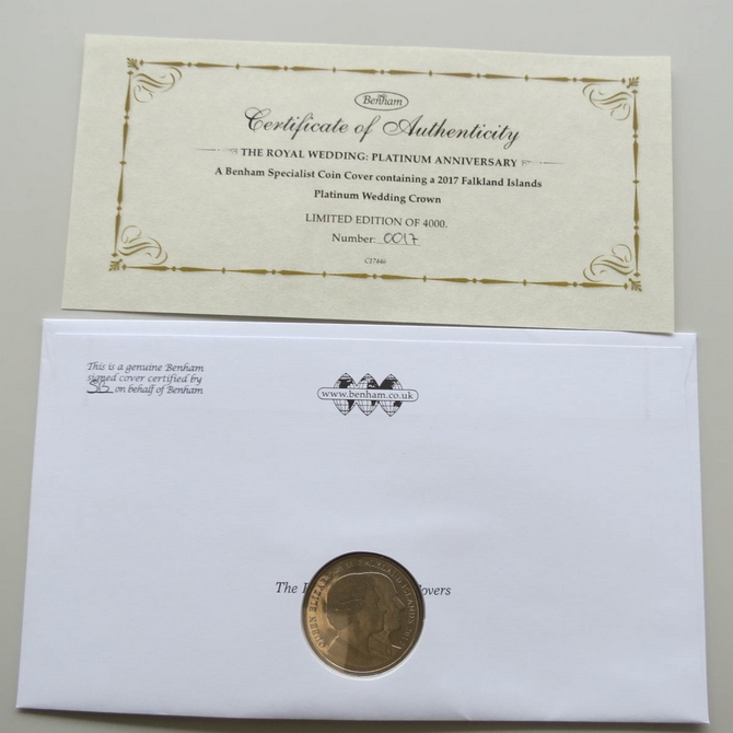 2017Royal Wedding Platinum Anniversary 1 Crown Coin CoverBenham Signed UK PNC