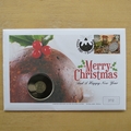 This 2018 Merry Christmas silver sixpence coin cover is a first day cover by Westminster. It celebrates the tradition of placing a silver sixpence in a Christmas pudding and hosts a 1943 genuine Royal Mint silver sixpence and a Royal Mail stamp. Cancelled postmark London SW1 1st December 2018.
