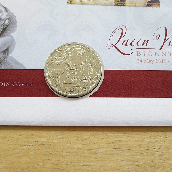 This 2019 Queen Victoria bicentenary 5 pounds coin cover is a first day cover by Westminster. It commemorates Queen Victoria's birth bicentenary and hosts a brilliant uncirculated five pounds coin by the Royal Mint and Royal Mail's six 2019 Queen Victoria bicentenary stamps. Cancelled postmark Long May She Reign First Day of Issue Royal Mail Tallents House Edinburgh 24th May 2019.