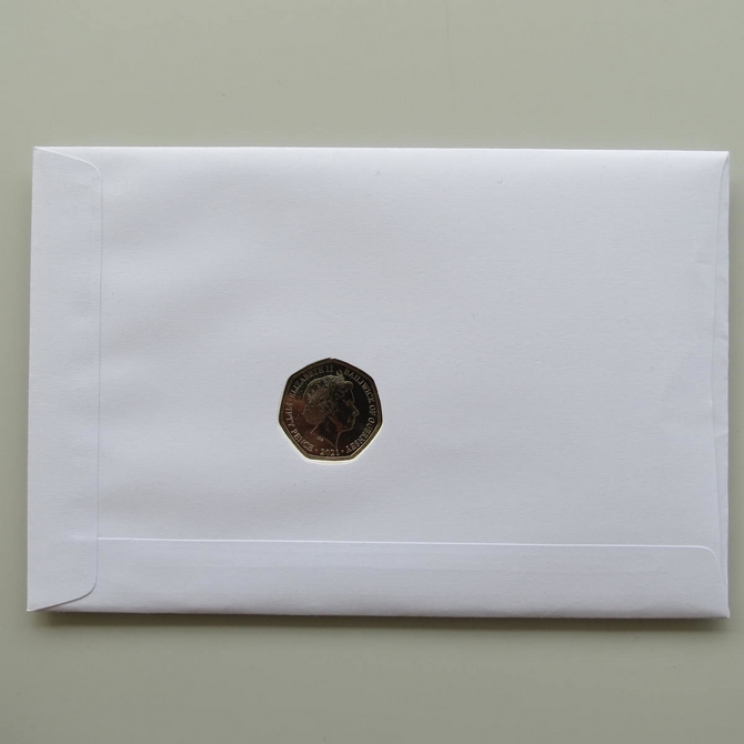 This 2021 Mr Benn 50th anniversary 50p pence coin cover is issued by UK as PNC First Day Covers. It hosts a brilliant uncirculated fifty pence coin by the Royal Mint and a Royal Mail stamp. Postmark cancelled 1st April 2021.
