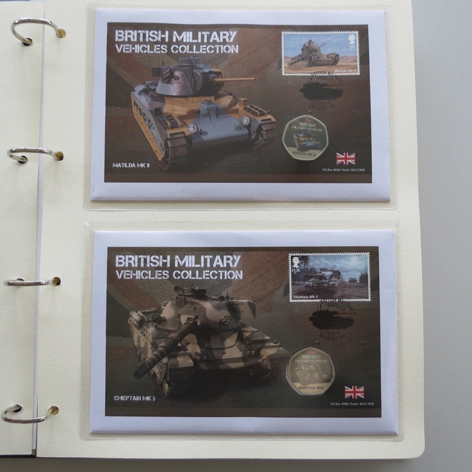 This 2022 British Military vehicles medal cover collection is issued in UK as PNC First Day Covers. The set showcases 100 year history of the British Army vehicles and the FDC hosts a full colour medal + a Royal Mail stamp are as listed below: