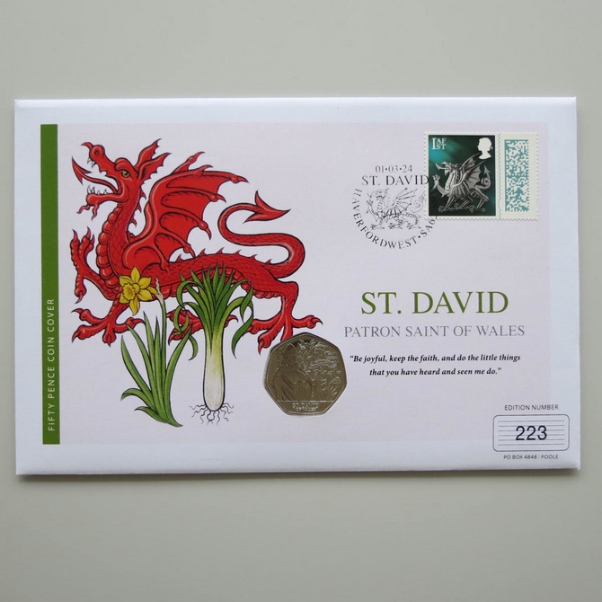 2024St David Patron Saint of Wales 50p Pence Coin CoverUK PNC First Day Covers