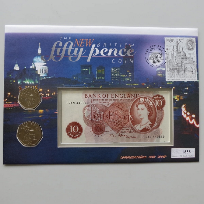 1997 The New British 50p Pence Coins 10 Shillings Banknote Coin Cover - UK First Day Covers