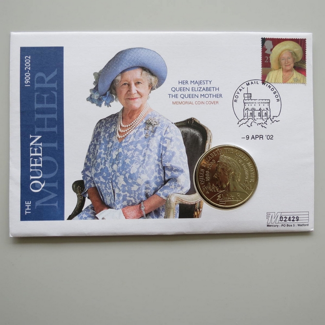 First day coin covers. FDC coin covers produced by Royal Mail, Royal Mint, Benham, Westminster & Mercury. > Royalty > The Queen Mother