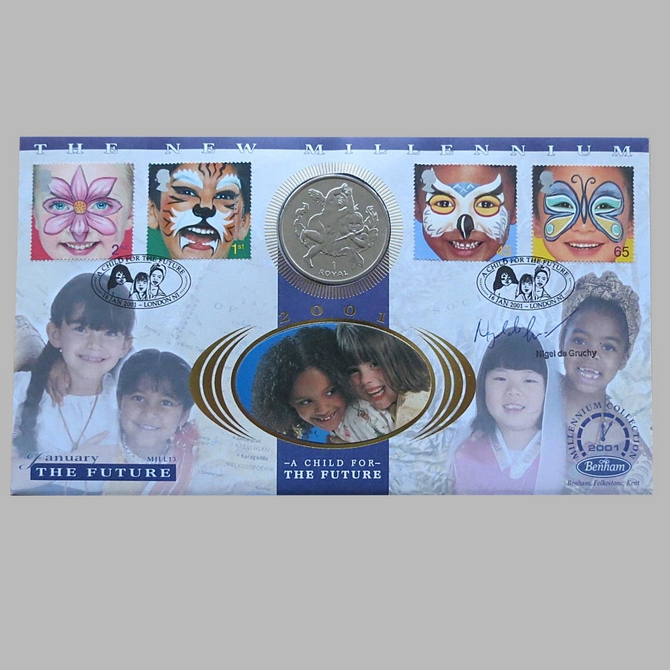 First day coin covers. FDC coin covers produced by Royal Mail, Royal Mint, Benham, Westminster & Mercury. > Millennium