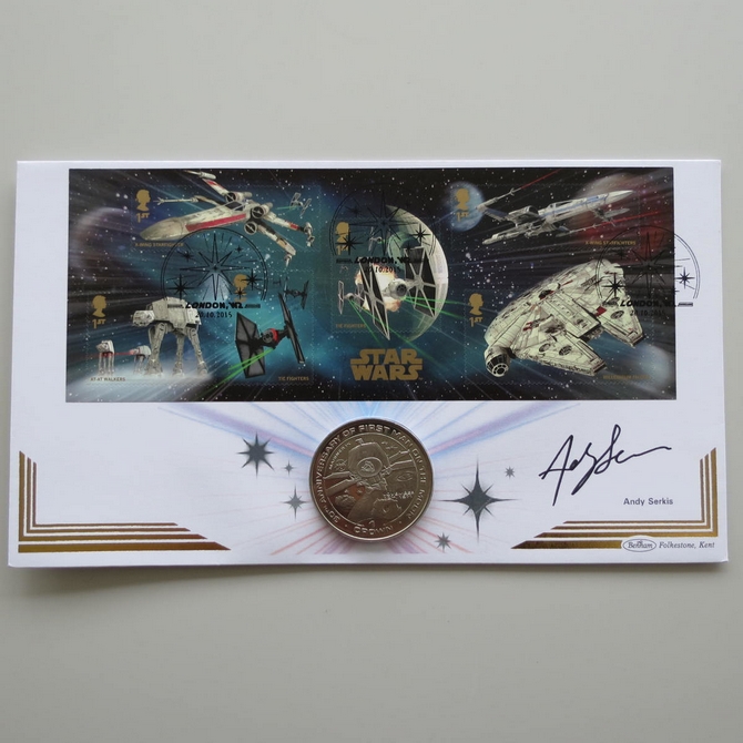 2015 Star Wars Space Adventure 1 Crown Coin Cover - Benham Signed First Day Covers