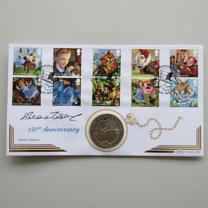 2015 Alice In Wonderland 150th Anniversary 1 Crown Coin Cover - Benham Signed UK PNC