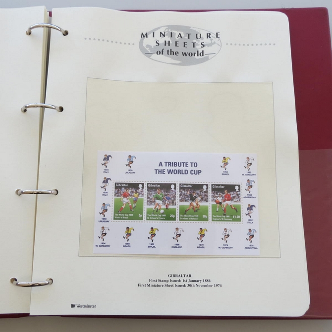 This Stamp Miniature Sheets of the World collection hosts 50 stamp minisheets from across the world. All stamp minisheets are unmounted mint. The collection is pre-owned, presented in an album and issued by Westminster Collection.
